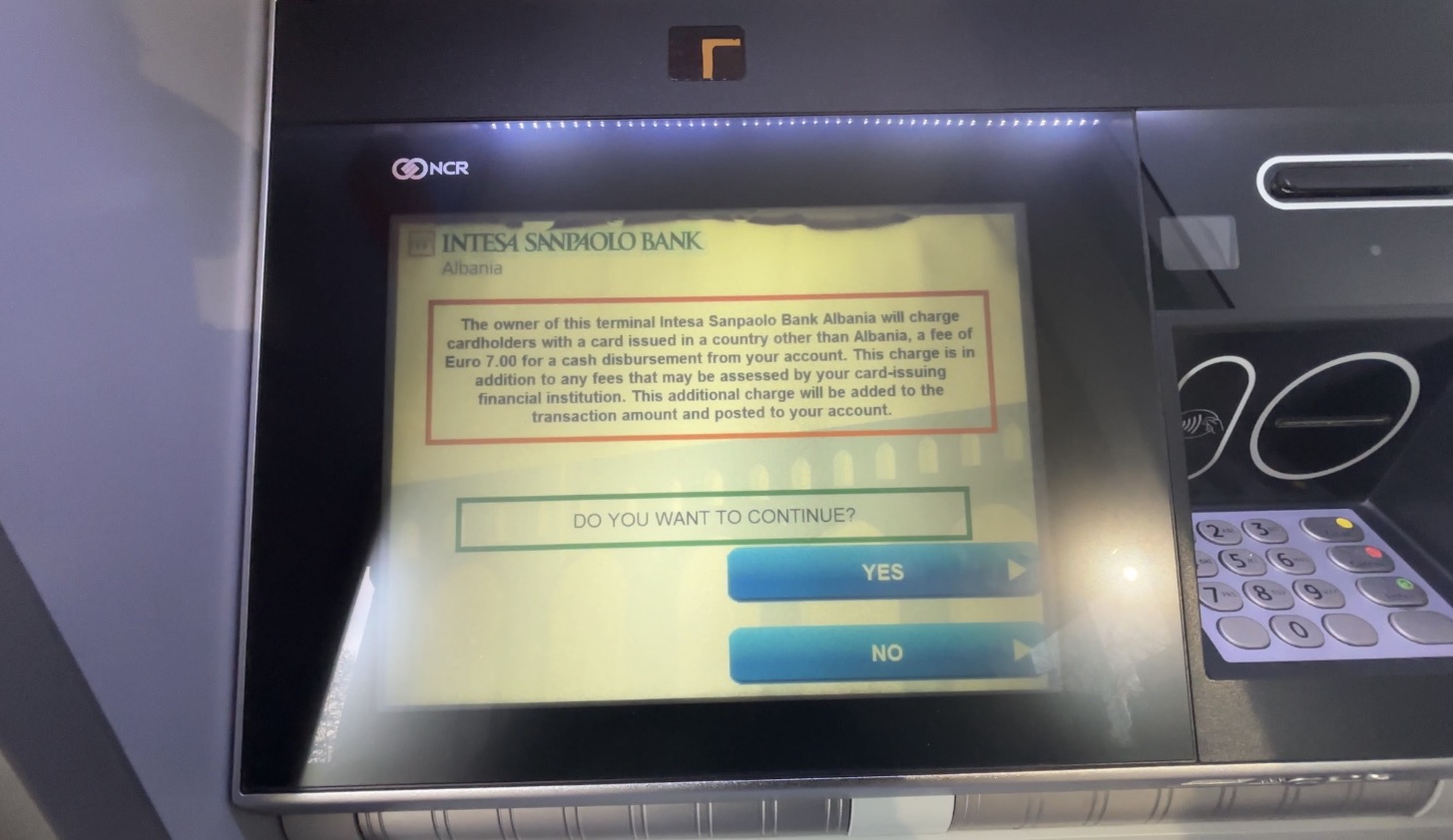 However, as of 2026, all bank ATMs in Albania charge a fee. The fee is more than 600 Lek per withdrawal