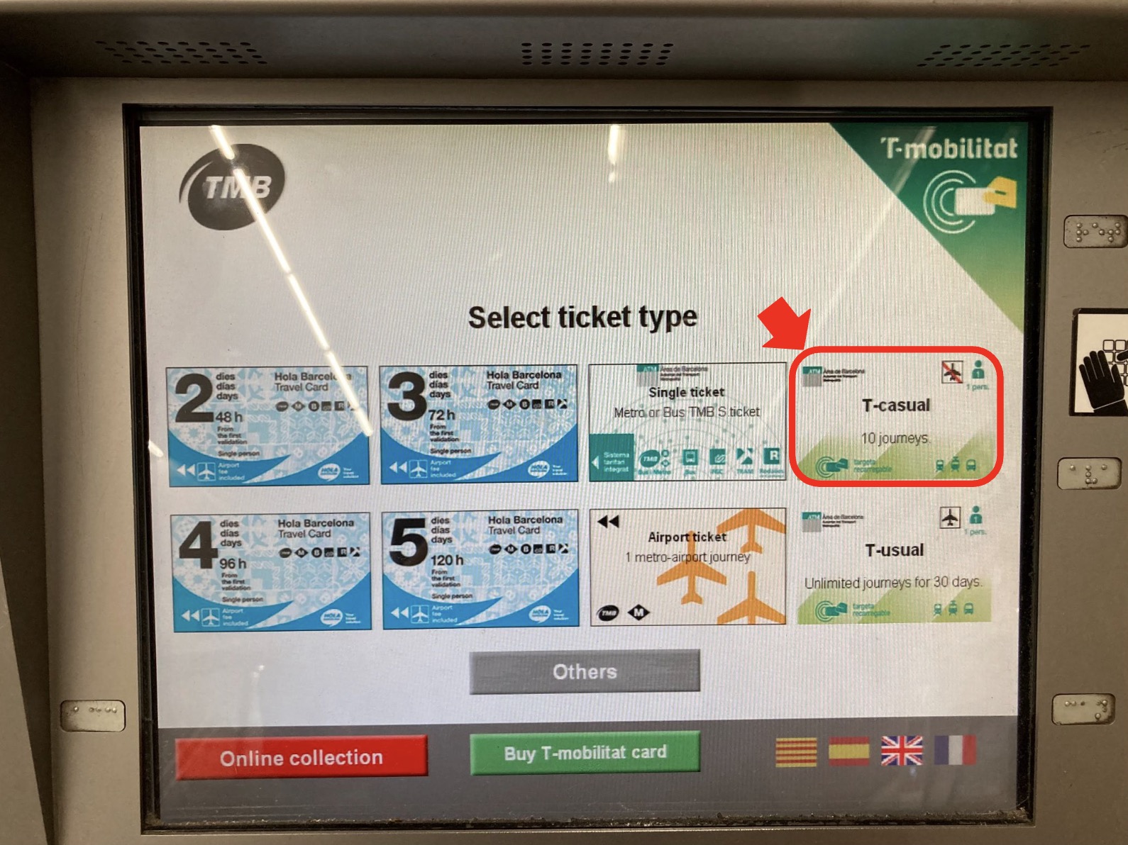 The ticket machines for the Barcelona Metro offer several ticket options. You can choose the best ticket depending on your travel style and length of stay.
