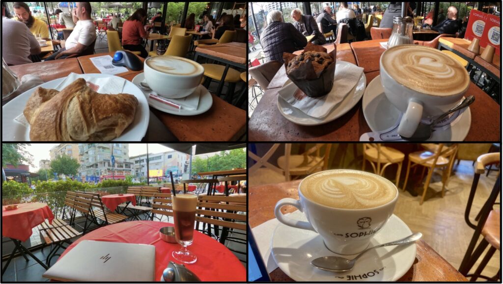 Sophie Caffe makes cappuccinos very carefully. Prices have gone up recently, but a cappuccino and croissant set still costs only 260 ALL (€2.6), which is very affordable.