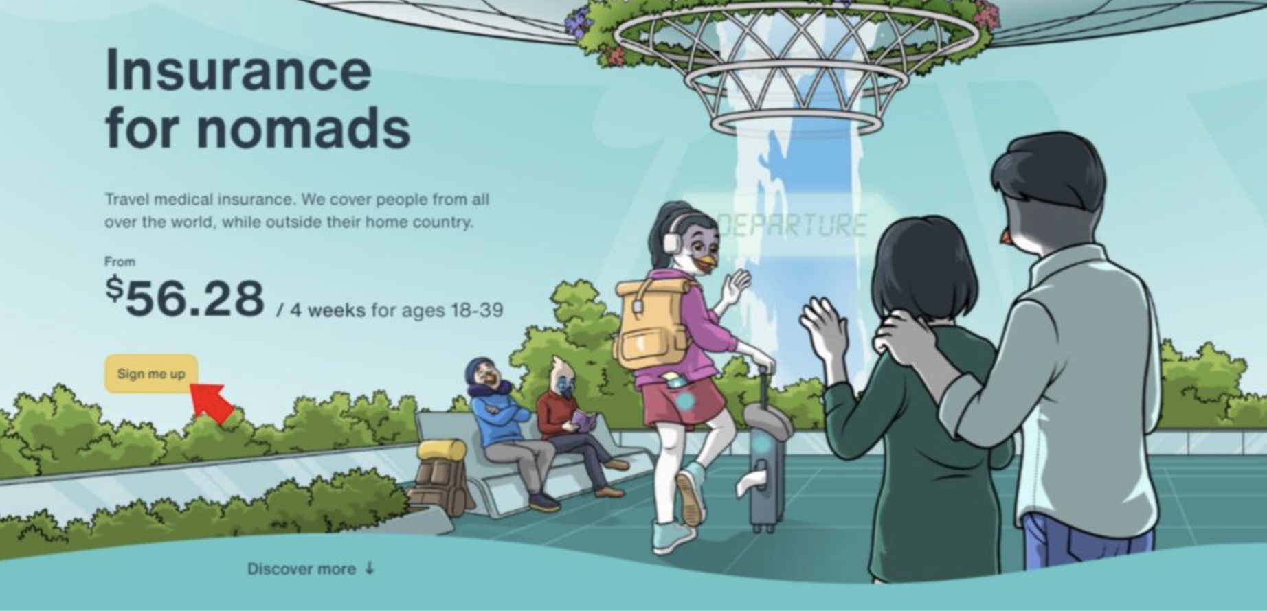 When you click the link to the official SafetyWing website, the following screen will appear.