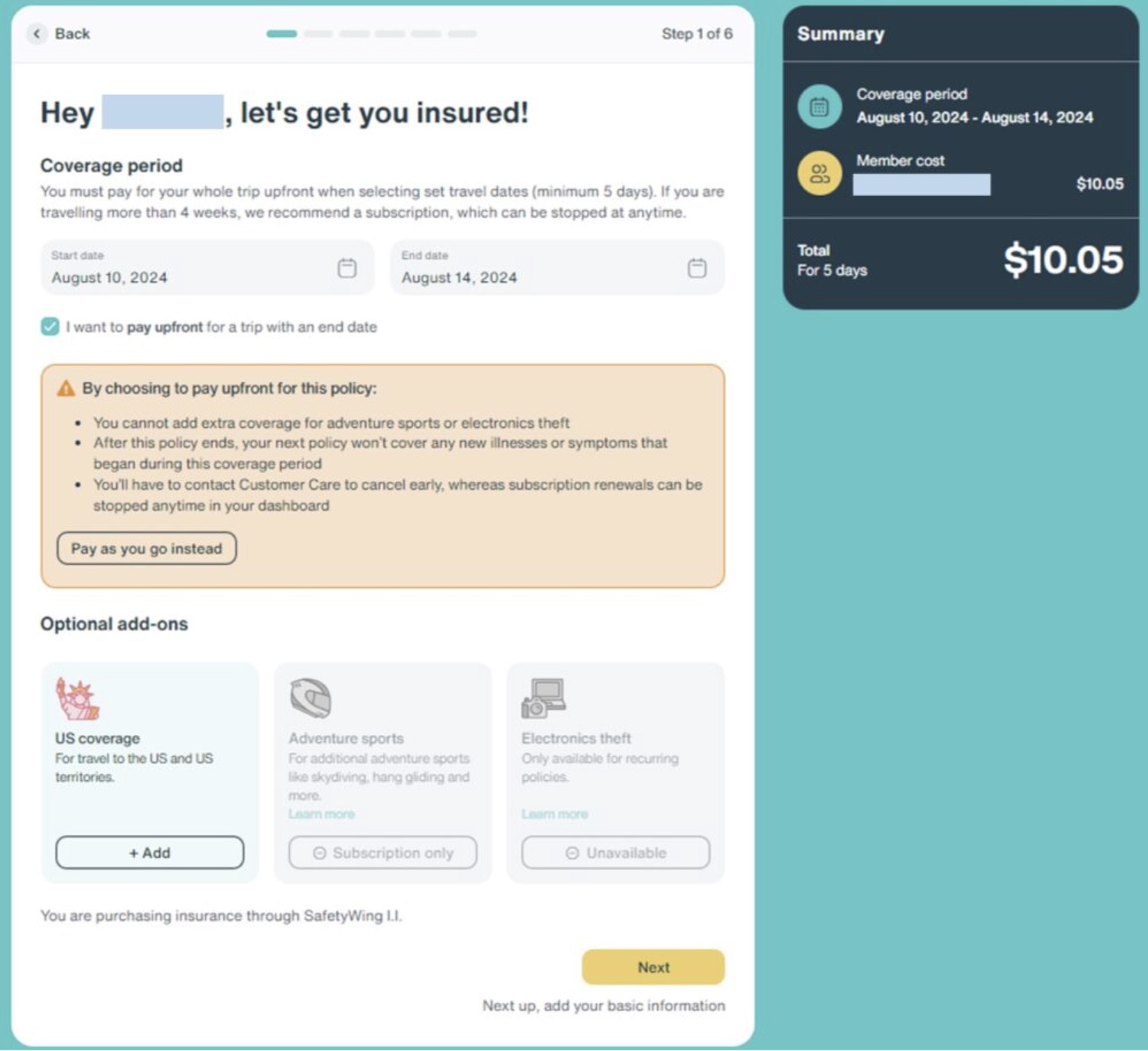 In this section, we will explain how to purchase SafetyWing insurance, complete with screenshots to guide you through each step.