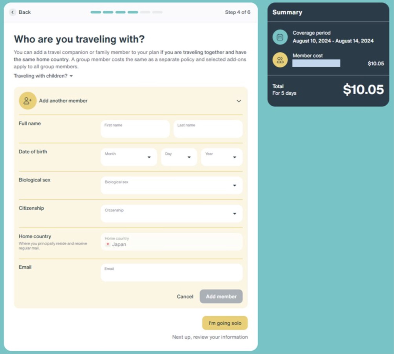 Next, if you are traveling with someone, add your companion by filling out the form below.