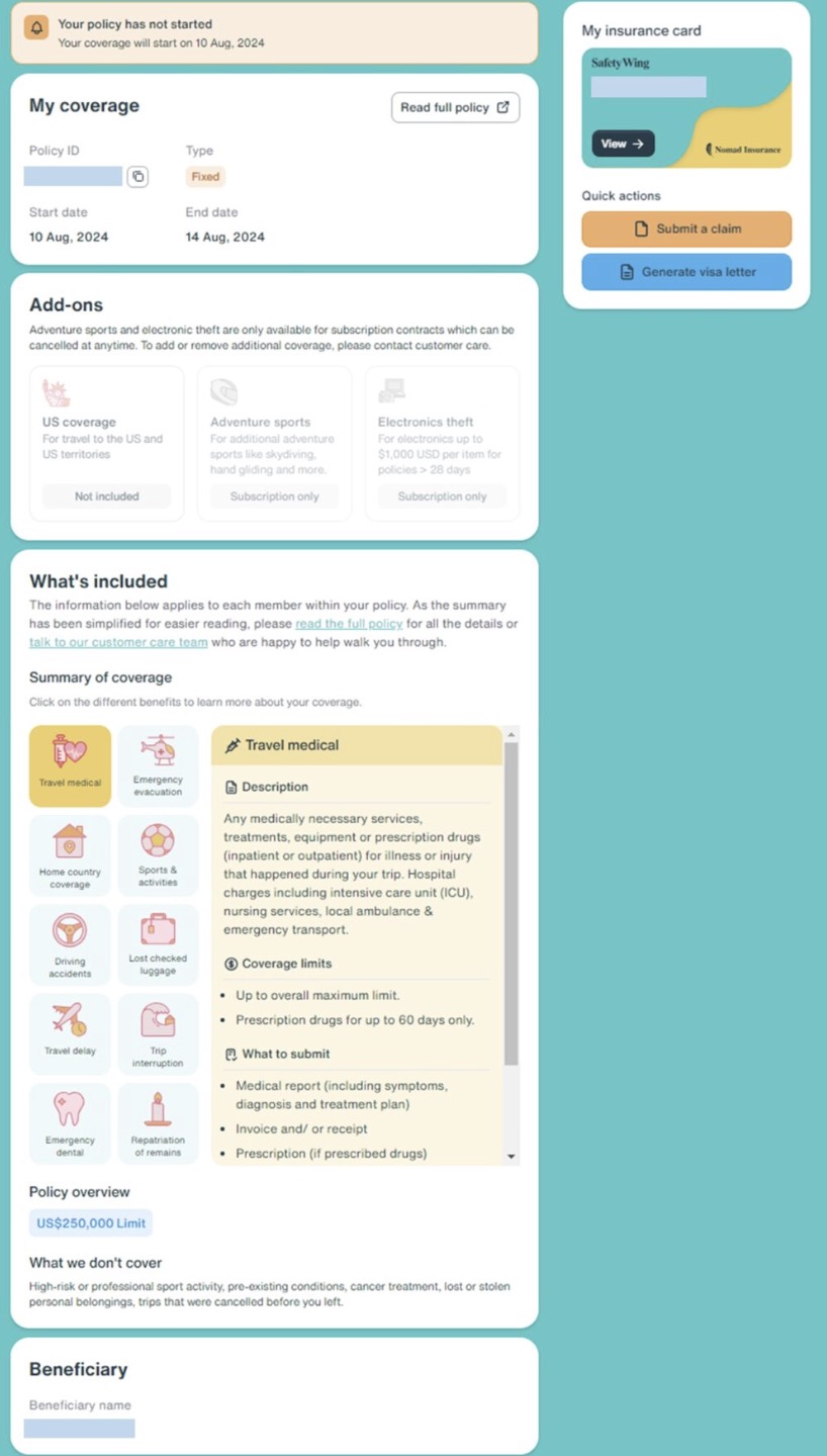 Before choosing SafetyWing for your travel insurance, it’s important to understand its limitations and policy conditions.