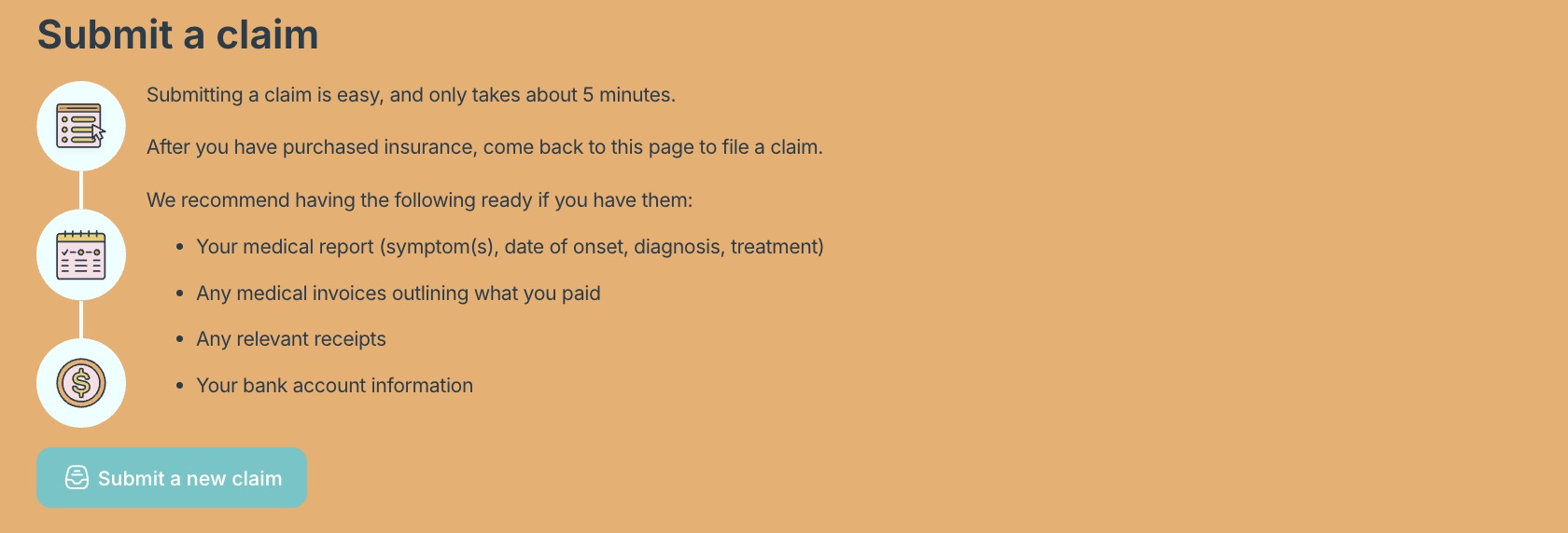 You can submit your insurance claim through the mobile app or a web browser. When filing a claim, please prepare the following documents: