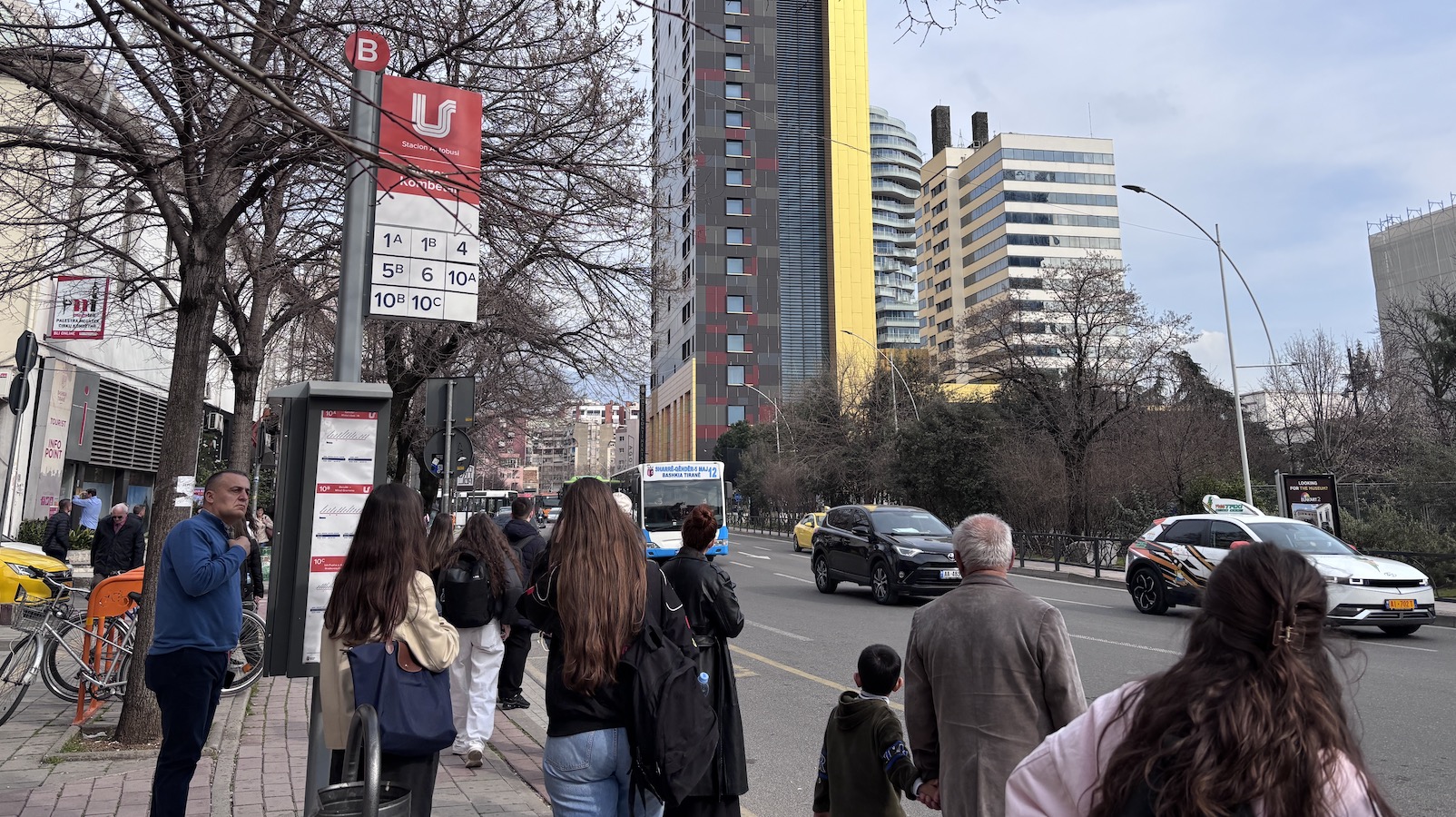 The buses going to the terminal are large two-section buses. After you get on the bus, a staff member will come to collect the fare. The ticket costs 40 lek, and you need to pay in cash.