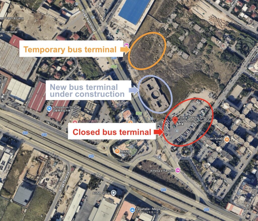 When searching for the terminal on Google Maps, type South and North Albania Bus Terminal. You can tap the link to check the location on the map.